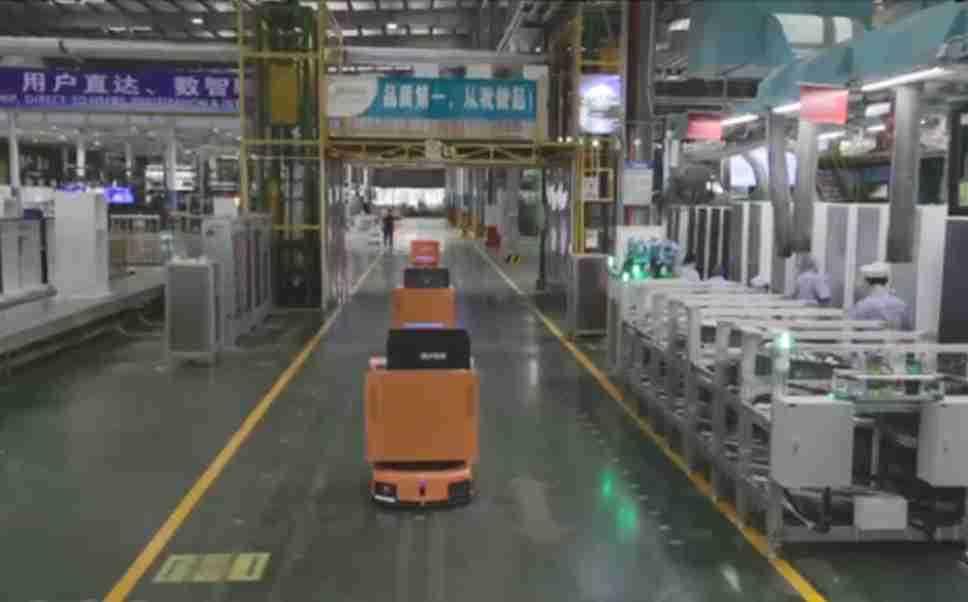 为车载冰箱物流配送打造的智能解决方案,,包含产中物流通过潜伏举升AMR搬运至线边,,产后成品物流智能仓储,,,,流程包含产中物流智能齐套入库,,线边安灯叫料AMR智能配送至线边,,,,成品入库、、、出库,,,,通过无人堆高车机器人,,,,智能仓储管理替代人工作业管理,,实现更高存储、、、更高效率、、、更具柔性化的解决方案。。。
